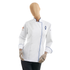 · Filipina de chef ejecutiva básica blanca con vivo azul con 10 botones de polímero, bolsa para termómetro. Material: 65% poliéster y 35% algodón. Logotipo LCB y Anáhuac.