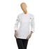 Filipina de chef ejecutiva blanca para dama manga larga. 10 botones de polímero, bolsa para termómetro, bolsas laterales. Tela 65% poliéster 35% algodón. Brazo derecho logo TESOEM, bandera de México cuello izquierdo, nombre en cuello derecho y frente izquierdo logo gastronomía.