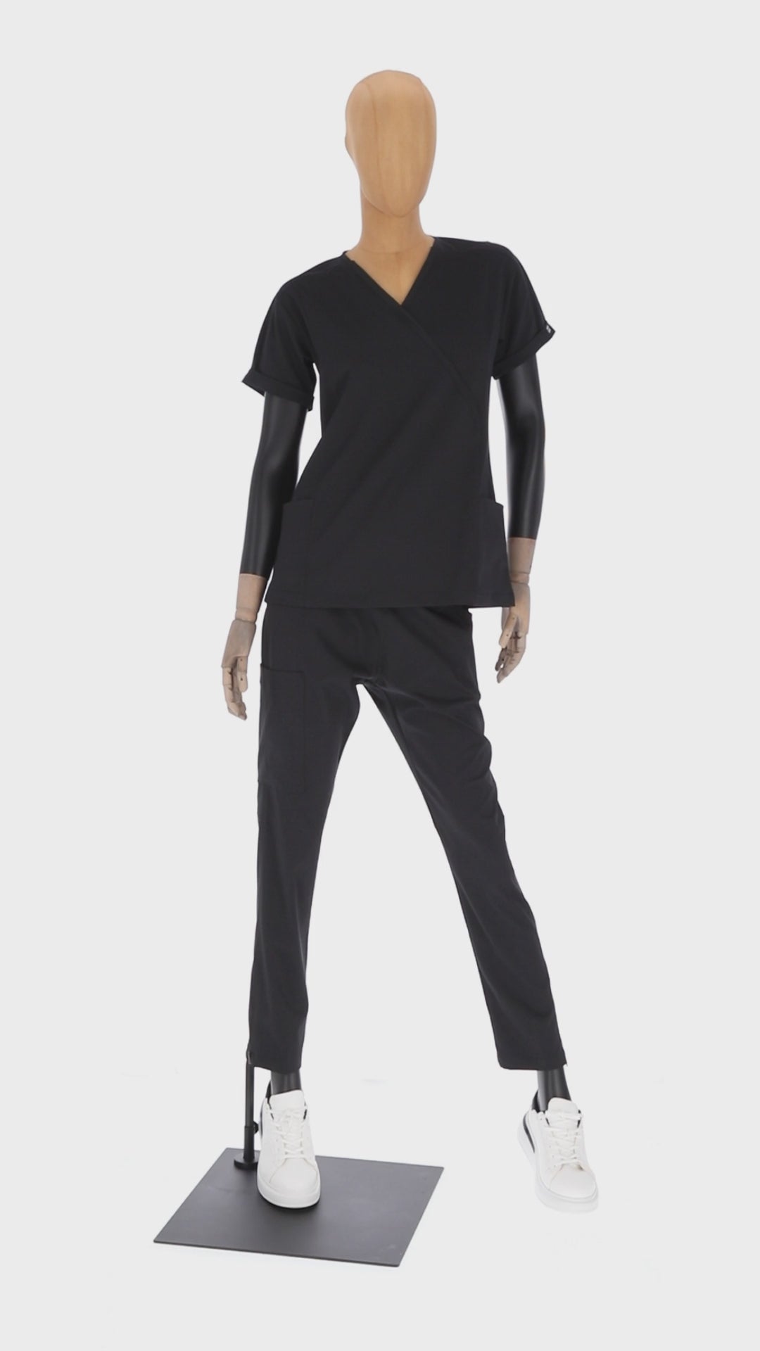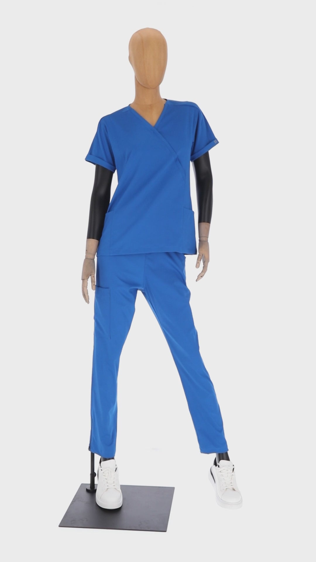 Pijama de quirófano para dama en tela 96% poliéster 4% lycra. Su tela es con tecnología anti-fluidos, durable y no necesita plancha. La filipina cuenta con dos bolsas laterales y una. Diseño con vivos en mangas clavículas y espalda. El pantalón con resorte forrado y jareta. Cuenta dos bolsas delanteras y bolsa tipo cargo en pierna derecha. Corte ligeramente entubado con cierres en la parte del tobillo.